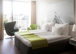 Stockholm's largest hotel is located in the heart of Stockholm city adjacent to the Central Station and Arlanda Express facing the Norra Bantorget Square. The hotel is brand new, built in 2008, and is a spectacular building dominated by granite and glass, leaning over the square reflecting the green park. The hotel has a wonderful Aquavit Grill & Raw Bar, contributed by Marcus Samuelsson of New York’s Aquavit restaurant. The eighth floor of the hotel holds Selma CitySpa+ where you can indulge yourself in the sauna, gym, spa with a spa treatment and/or in the heated outdoor pool, all with a fantastic view of Stockholm. All rooms are non-smoking and have TV, telephone, hair dryer, Internet access and some of the most comfortable beds we have ever slept in in the whole of Scandinavia! Lift to all floors.
