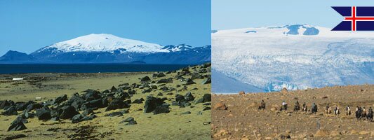Onwards following the coastline around numerous fjords via Höfn and in sight of majestic Vatnajökull, Europe´s largest glacier. Westwards around the Hornafjördur, before reaching the wonderful glacial lagoon of Jökulsarlon with its huge icebergs, and from where boat trips are possible. Through the vast Breidamerkursandur sand area passing Iceland´s highest mountain, Hvannadalshnukur (2119 m), to Freysnes, next to Skaftafell National Park (230 miles).