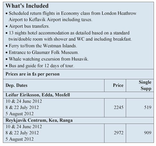 Ferry trip to the Westman Islands where we explore, on foot, the villiage of Heimaey. You then enjoy the afternoon on your own exploring the island.