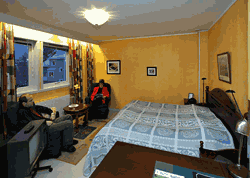 A cosy hotel situated in the centre of Arjeplog, 150 metres from the famous Silver Museum. The hotel has 36 rooms, single and double, equipped with satellite TV, shower and toilet as well as 7 larger family rooms for 4-5 people. The hotel also has a sauna, solarium, table tennis, darts and billiards.